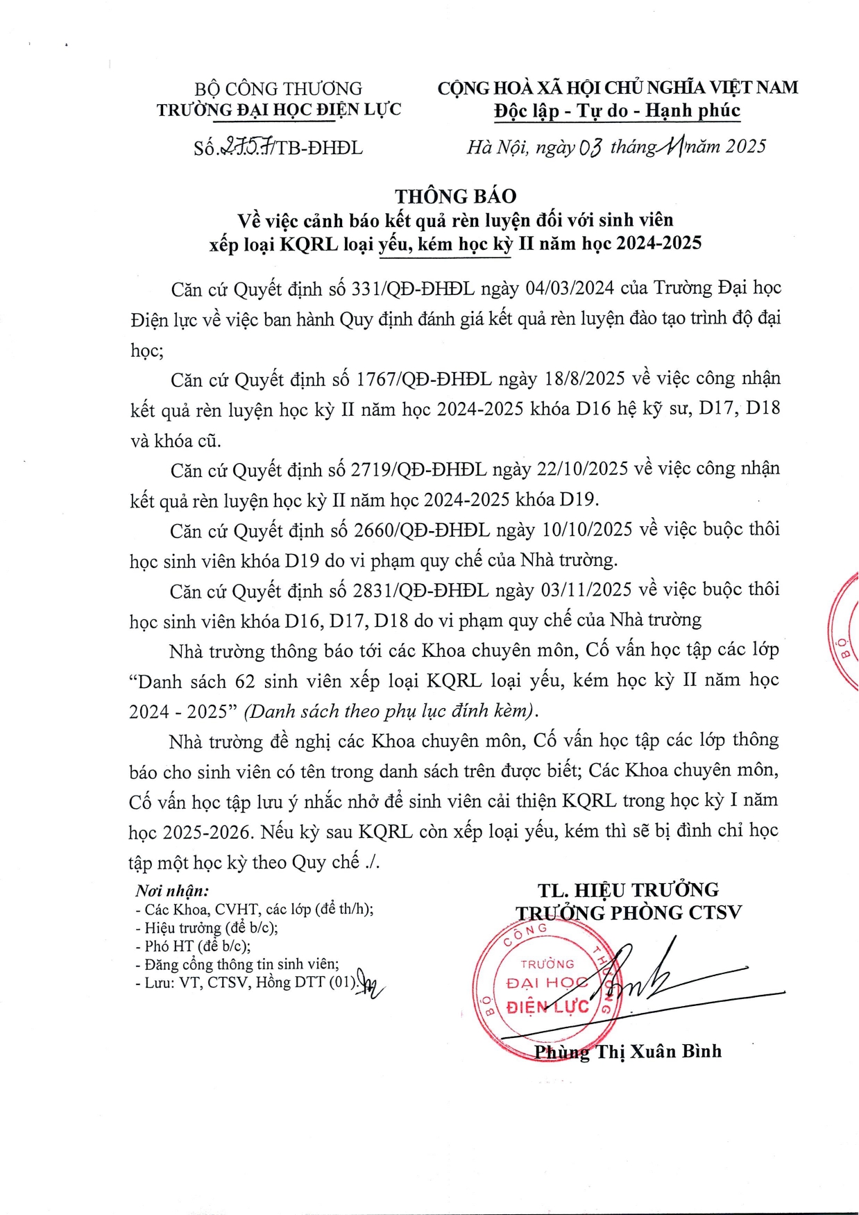 V/v buộc thôi học SV vượt quá số lần cảnh báo học tập và nghỉ học dài ngày không lý do (17-03-2021)
