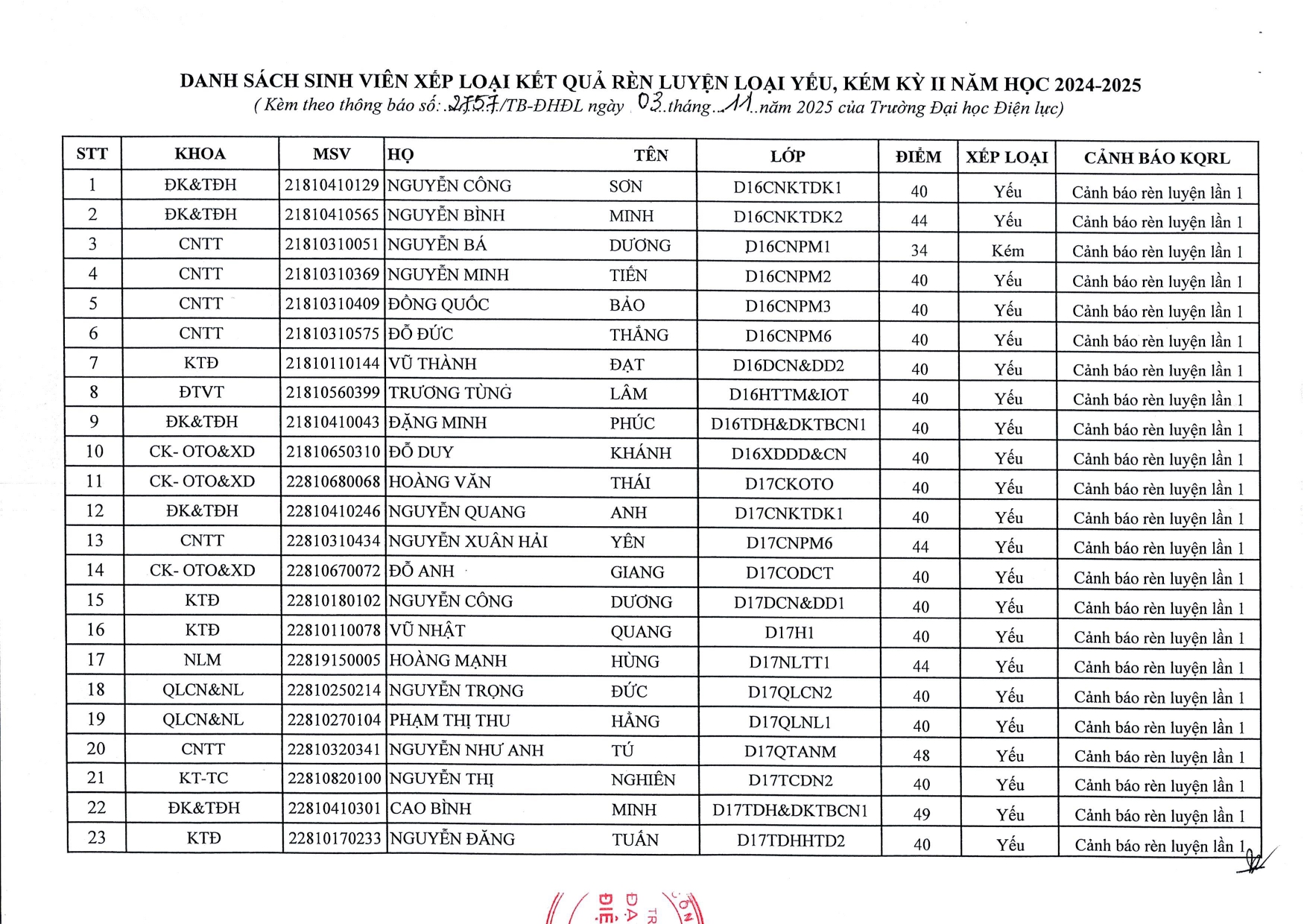 Chi tiết thông báo sinh viên xem tại ảnh dưới đây: