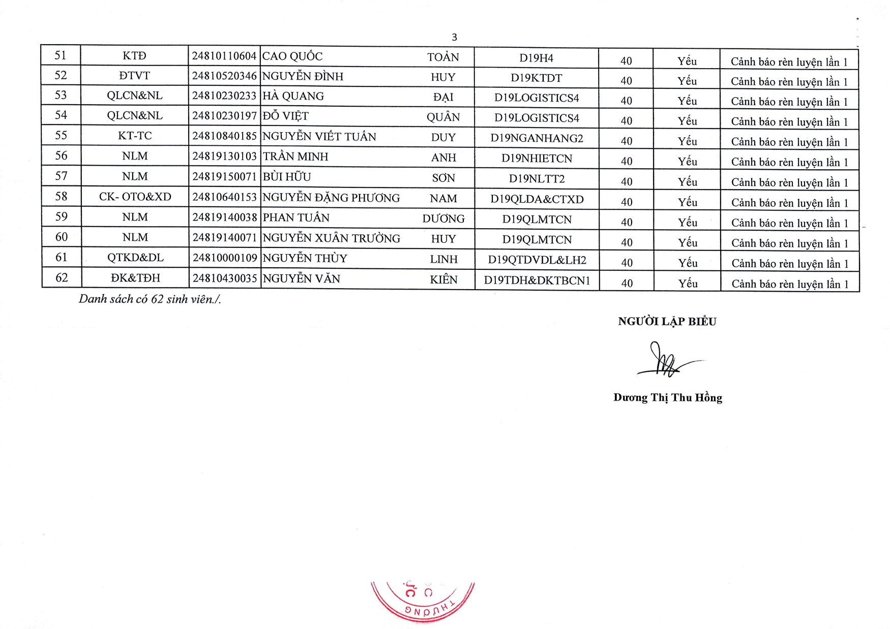 Thông báo "Danh sách sinh viên quá hạn đào tạo" (21-12-2021)