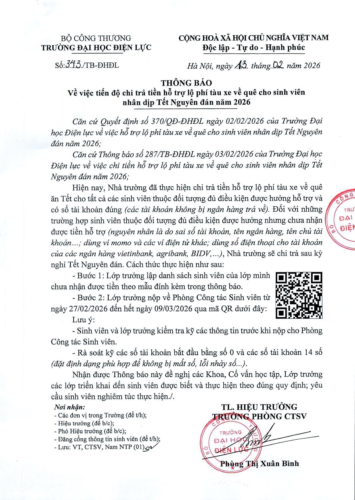 Mẫu kê khai số tài khoản ngân hàng cho sinh viên chưa nhận được tiền hỗ trợ lộ phí tàu xe về quê cho sinh viên nhân dịp Tết Nguyên đán Bính Ngọ 2026.